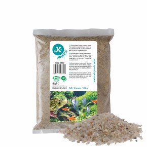 Přírodní křemičitý písek do akvárií a terárií od JK ANIMALS je voděodolný, má vysokou barevnou a chemickou stálost. Před použitím propláchněte pod tekoucí vodou, zbavíte se tím případných prachových nečistot.