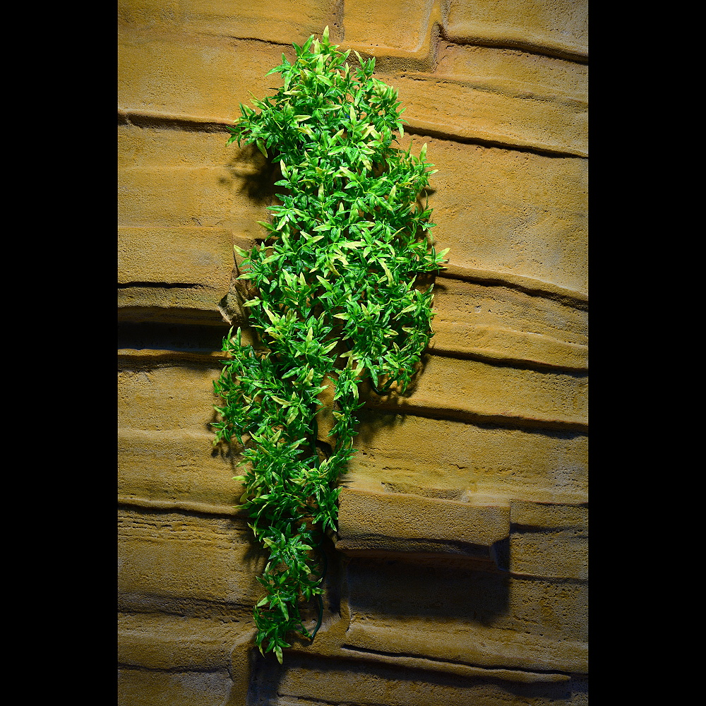 Výhodou plastových rostlin je, že dlouho vydrží, jsou omyvatelné, dají se umístit na libovolné místo, nemusí se zalívat a nepřerostou. Zelená rostlina oživí každé terárium, dejte ale pozor u býložravých plazů aby nepozřeli části plastových rostlin.