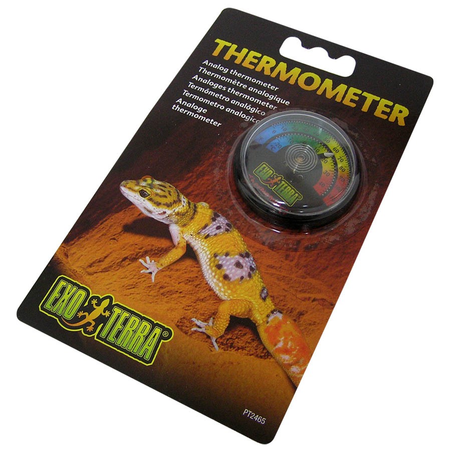 Thermometer Exo Terra je jednoduchý terarijní teploměr, který se instaluje nalepením na rovný podklad (například sklo).